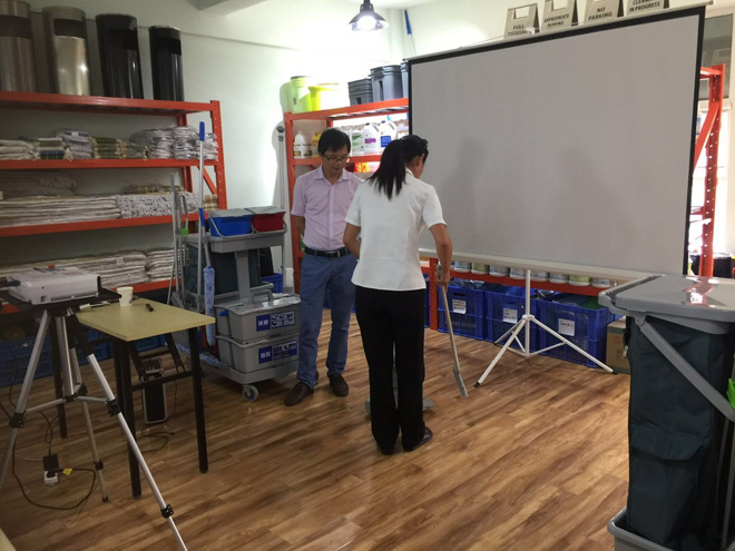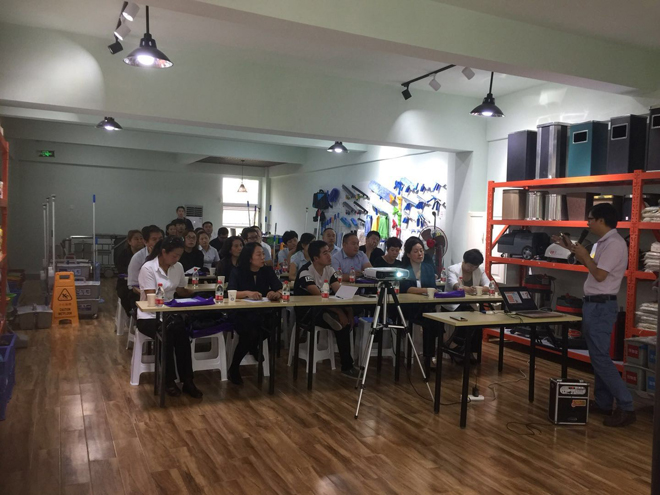 通過現場講解展示,結合日常保潔工具的小比賽,讓來賓們更大程度的理解體會演講的內容。