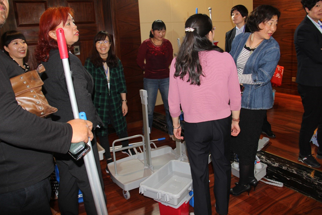 通過講解演示, 讓來賓們體驗日常保潔工具在各個不同工作領域中的搭配及應用。結合趣味游戲,與來賓們互動交流體會心德。最后打鐵趁熱對所學知識進行小檢測,對通過者頒發認可證書。