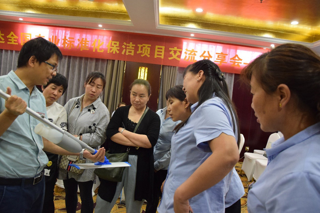 由施達(dá)總部分銷業(yè)務(wù)經(jīng)理給來賓們講解演示產(chǎn)品在日常保潔的實(shí)際應(yīng)用和管理,讓來賓們了解到日常保潔工具的搭配及使用。