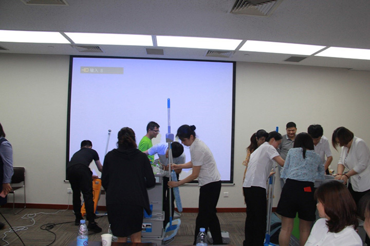 施達(dá)總部分銷業(yè)務(wù)經(jīng)理給來賓們講解演示產(chǎn)品在日常保潔的實(shí)際應(yīng)用和管理,讓來賓們了解到日常保潔工具的搭配及使用。
