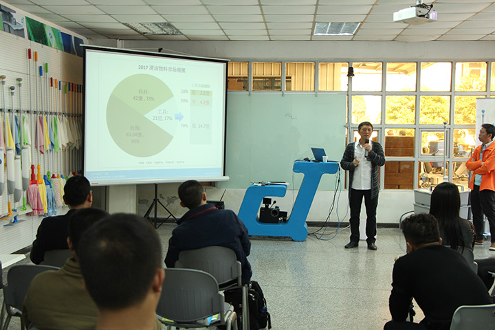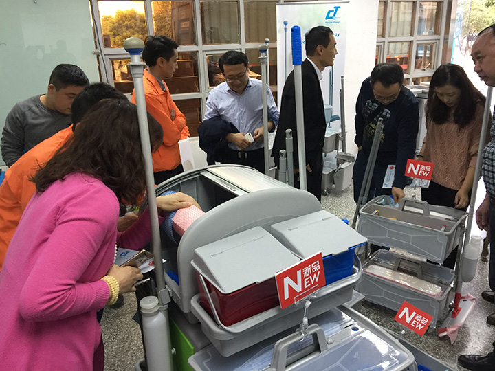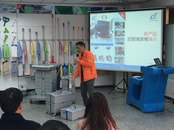 施達(dá)產(chǎn)品工程師朱傳鵬先生介紹施達(dá)新產(chǎn)品百變清潔桶的配置應(yīng)用方案