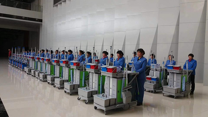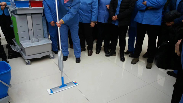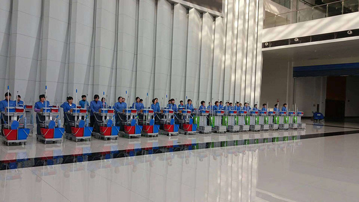 整齊的隊列,嚴謹的培訓,我們的清潔隊伍也能讓人感受出軍隊的紀律,有木有?為我們的保潔人員點個贊。