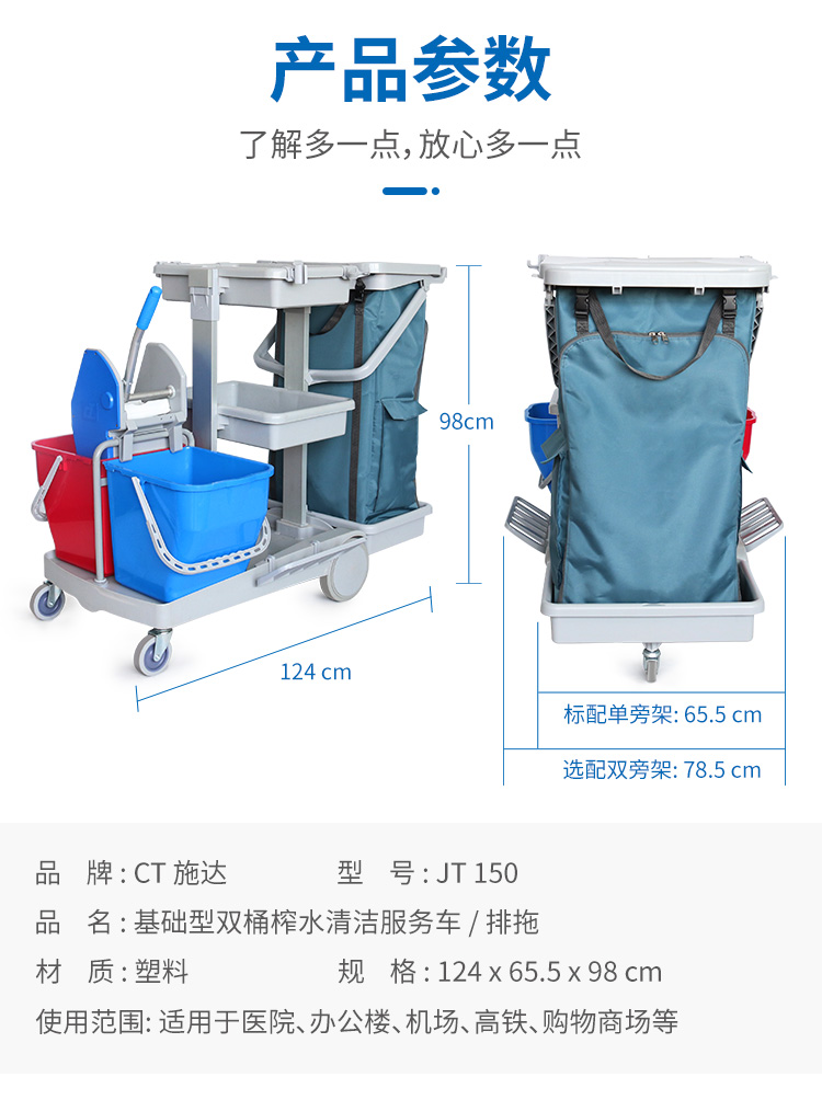 - 品名:CT 施達(dá) 基礎(chǔ)型雙桶榨水清潔服務(wù)車 / 排拖 JT 150