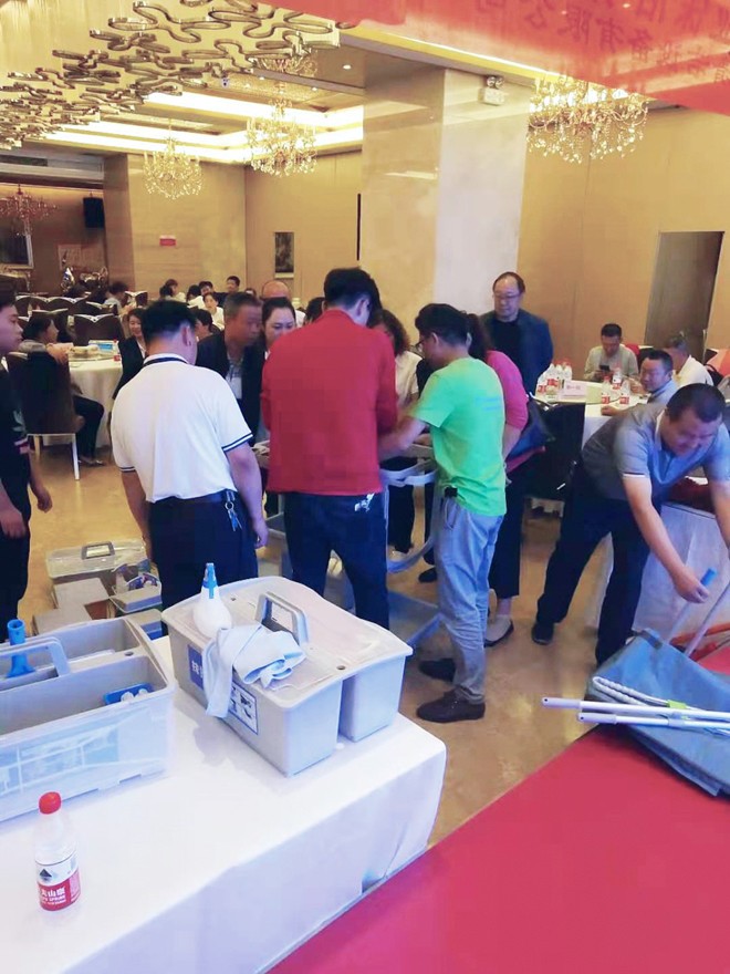由施達總部分銷業務經理給來賓們講解產品在日常保潔的實際應用和管理,來賓們紛紛切磋交流,共同探討日常保潔遇到的問題及解決方法。