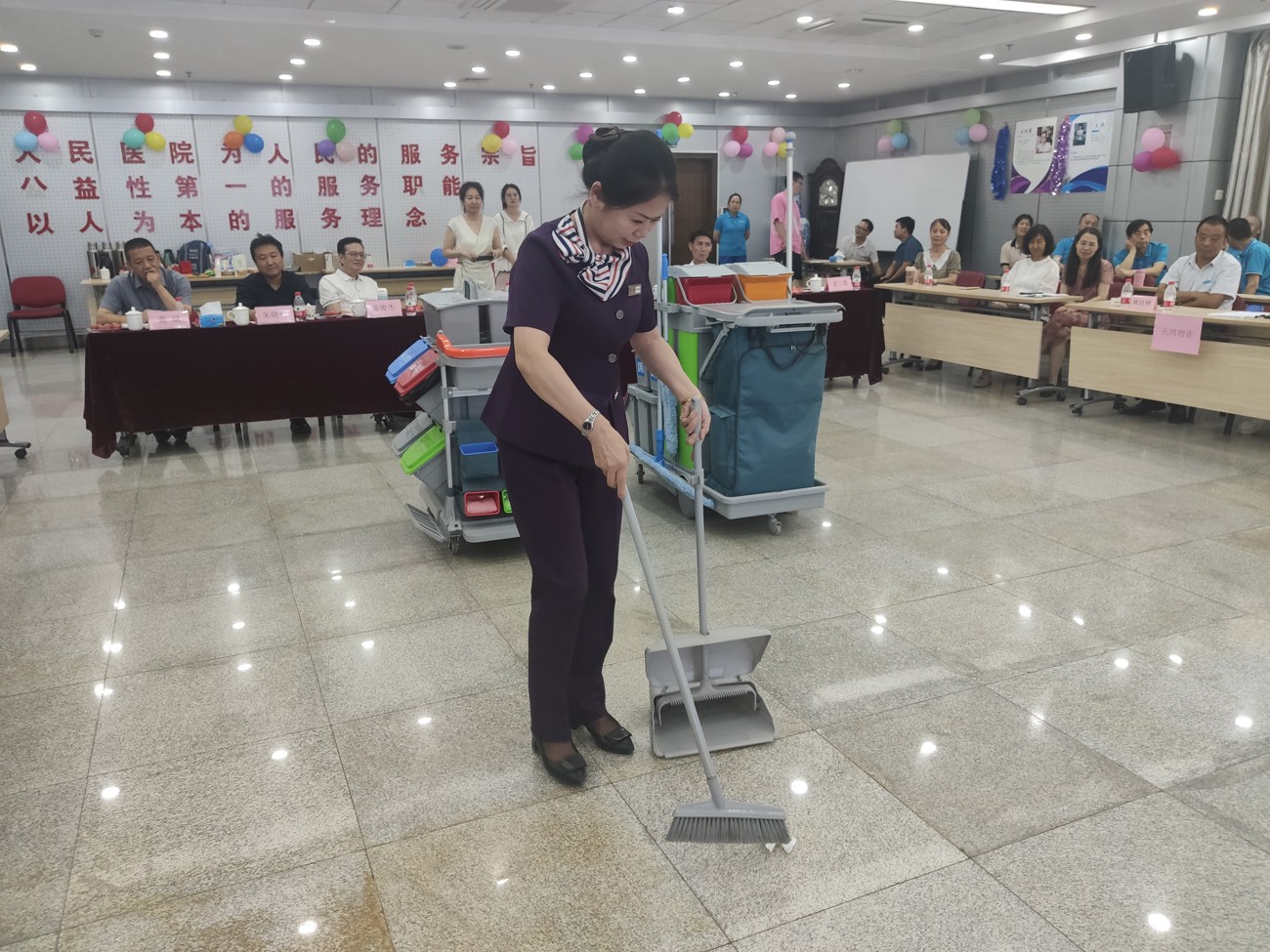 會上周經(jīng)理積極與一線的保潔人員交流分享關(guān)于綠色環(huán)保清潔標準化的理念與操作層面的流程方法。