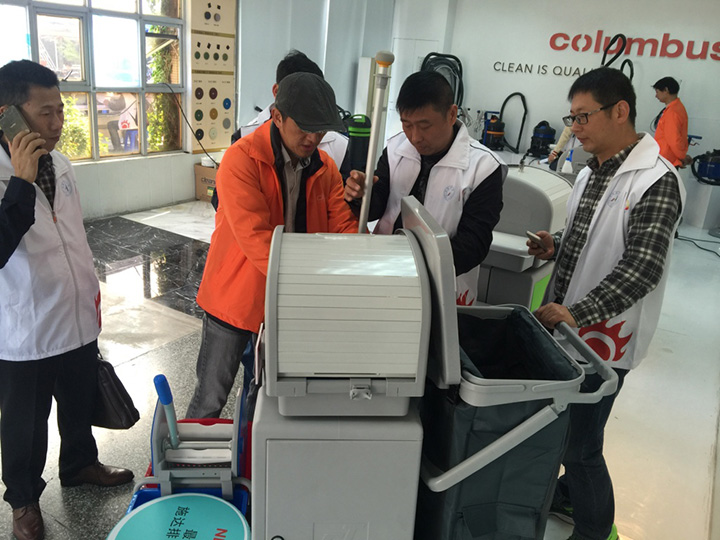 產(chǎn)品經(jīng)理周建國先生展示中央清洗噴灑平拖清潔系統(tǒng)簡易操作