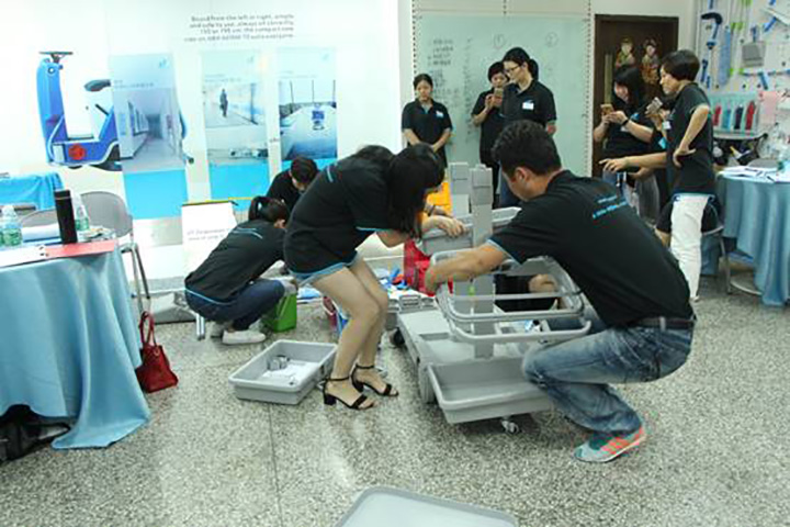 緊張刺激的刮玻璃比賽和醫院門診配置清潔車組裝比賽