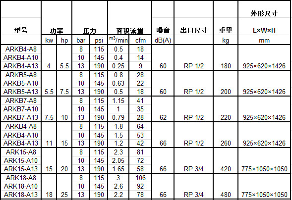 ◆壓縮空氣出口溫度=環(huán)境溫度+80~10oC,含油量:1~3PPM。